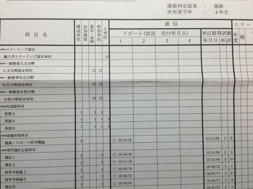 きのう、大学から『後期生の進級判定結果および履修・成績通知書』が届いて、10月から無事、4年次に進級できることに。 履修の詳細が、老眼女子にやさしくない文字サイズなのだけど、進級できることと、修得単位数合計は、ひとまず確認できた。 ※進級要件は…